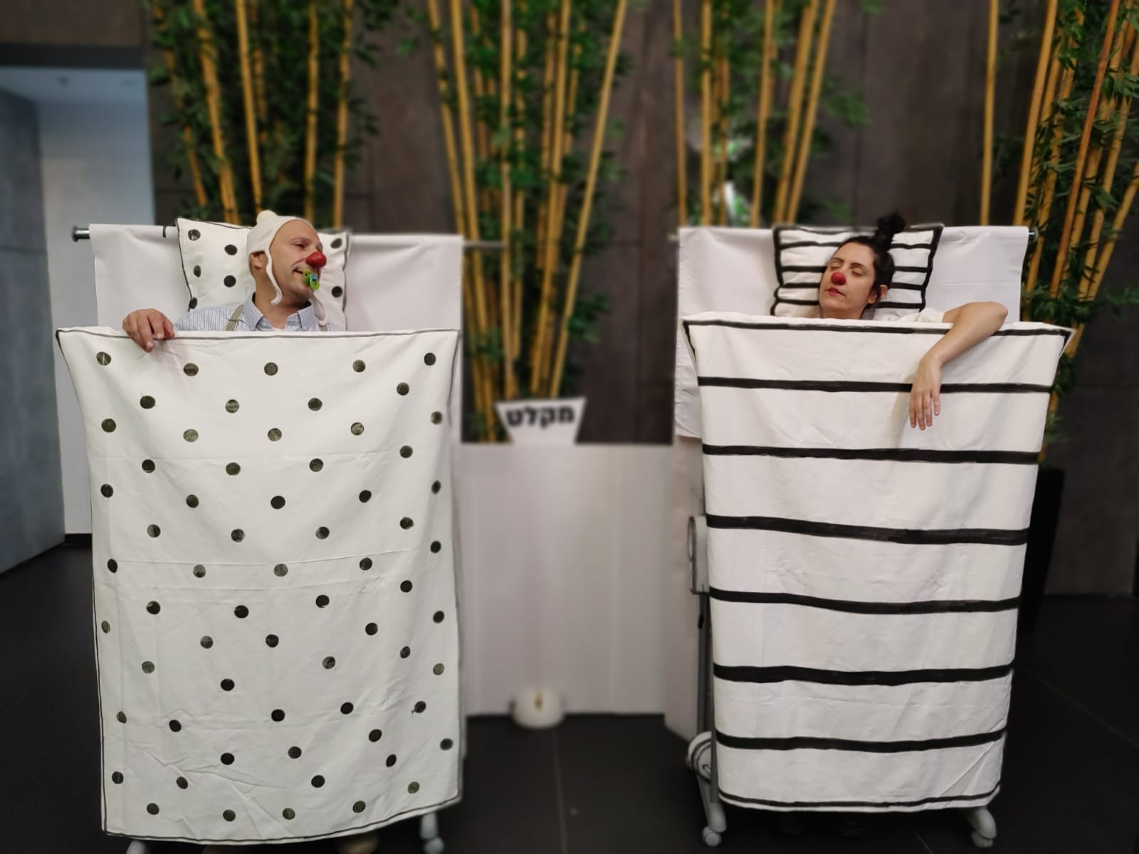 מופע לכל המשפחה. רוברט ולוסיין אוהבים לטייל ברחוב כמו כולם. לשבת על ספסל כמו כולם ולקרוא בעיתון, לאכול סנדוויץ' כמו כולם... אבל רגע, למה העוברים והשבים מתבוננים בהם... ??